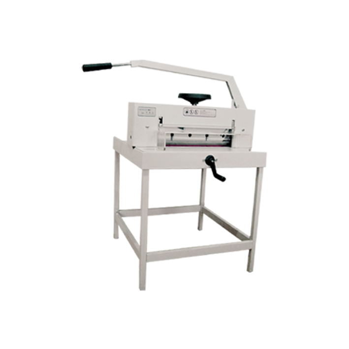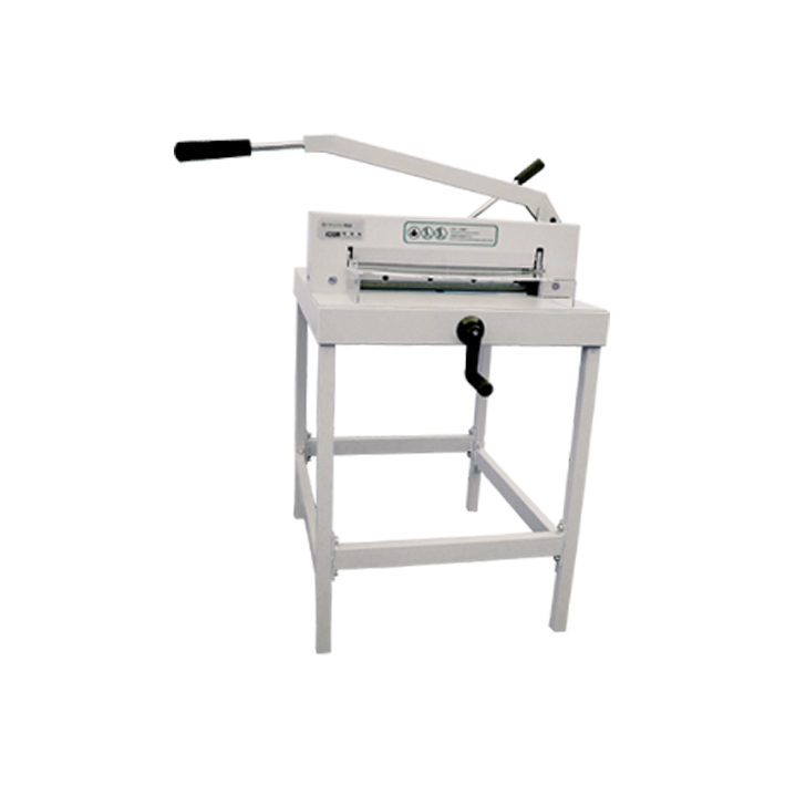 單桿凸輪壓紙千斤機構;安全護罩、裁紙刀柄安全鎖機構保護操作者安全。 推紙器滑塊設計,推紙器與裁刀保持平行。 高精度導軌和絲杠確保裁切定位。 公、英制裁切尺寸雙重顯示。 標配專用換刀架。 |