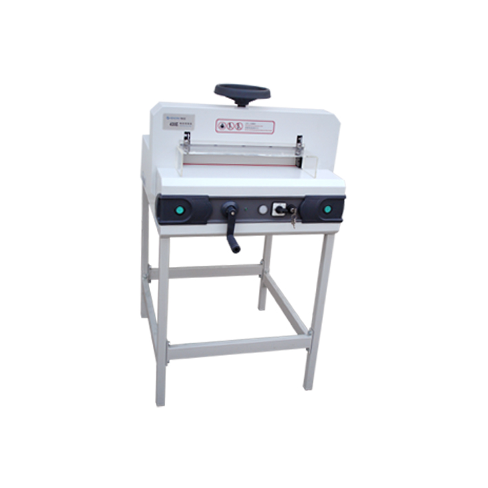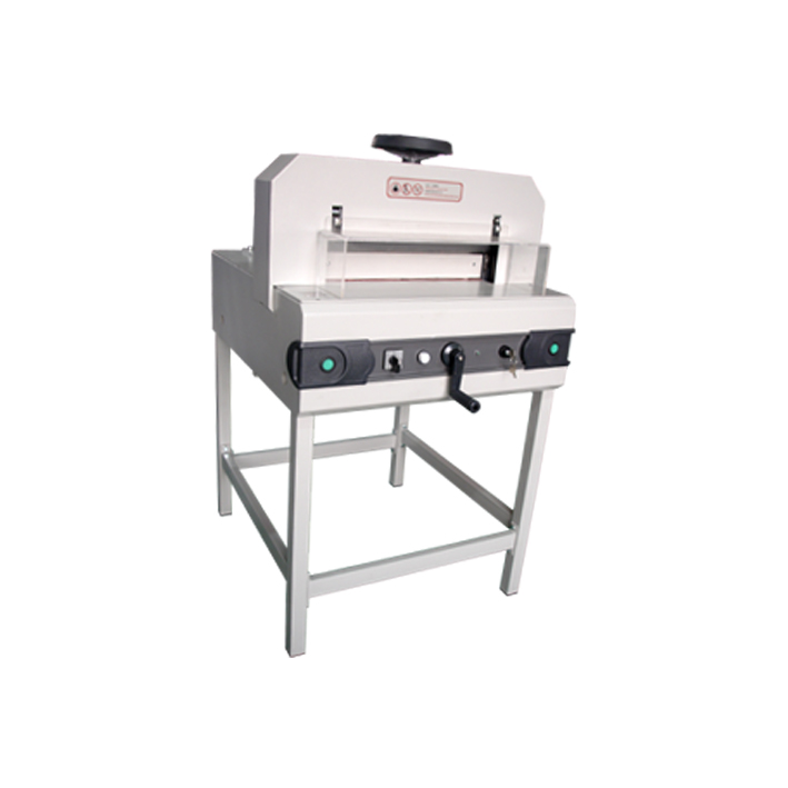 電動切紙,輪盤螺旋式壓紙千斤,裁切光道指示,裁切尺寸側邊定位標尺,手動微調校準。 電磁剎車控制電機,避免普通正反轉逆向電機導致的事故隱患; 主控電機和總電源雙重控制,雙手同時操作切紙程序,超載警示裝置和透明安全保護罩等多重安全裝置,操作安全; 電路控制系統(tǒng)整體設計,在設計理念上做到了機、電分離,使故障的排除更顯方便和人性化。 機身整體鑄造。 不需拆卸機罩就可使用隨機配備的專用換刀工具輕松更換刀片。 |