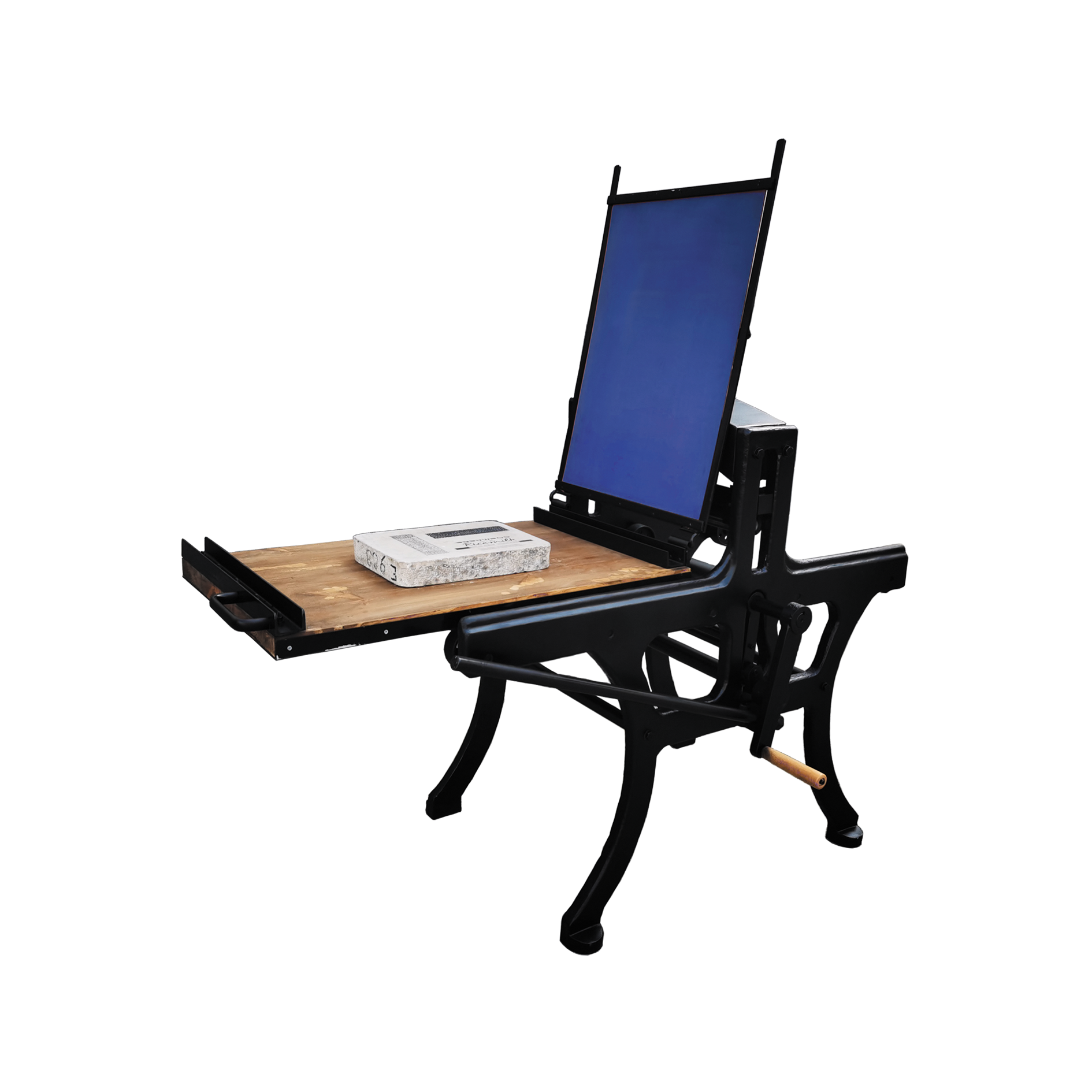 | YJ-18 石印機(jī) 依據(jù)史料及二十世紀(jì)初到五十年代中國(guó)普遍使用的經(jīng)典機(jī)型為參照復(fù)制再造。 適合美術(shù)院校版畫專業(yè)教學(xué)和藝術(shù)創(chuàng)作,也適合博物館做復(fù)制和展陳。 |